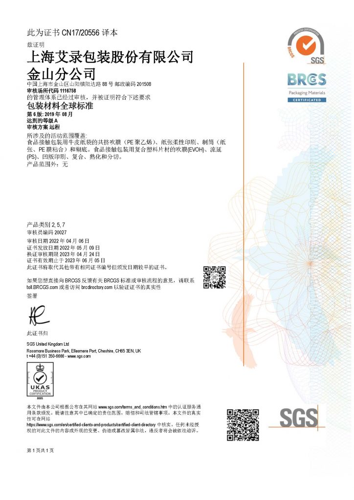 公司是上海市認(rèn)定的科技小巨人、市級(jí)企業(yè)技術(shù)中心、上海市高新技術(shù)企業(yè);公司品牌“艾錄包裝”被評(píng)定為上海市著名商標(biāo);公司產(chǎn)品食品包裝用牛皮紙袋被認(rèn)定為上海名牌產(chǎn)品;2019年和2020年公司被評(píng)為“上海民營制造業(yè)企業(yè)100強(qiáng)”;2018至2021年公司連續(xù)四年進(jìn)入行業(yè)權(quán)威媒體《印刷經(jīng)理人》雜志評(píng)選的“中國印刷包裝企業(yè)100強(qiáng)”企業(yè)名單。了解更多